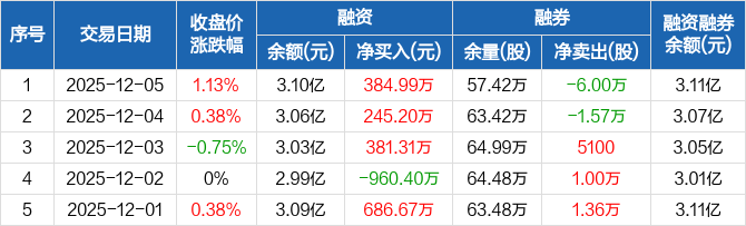中国铁物:连续3日融资净买入累计1011.5万元(12-05)