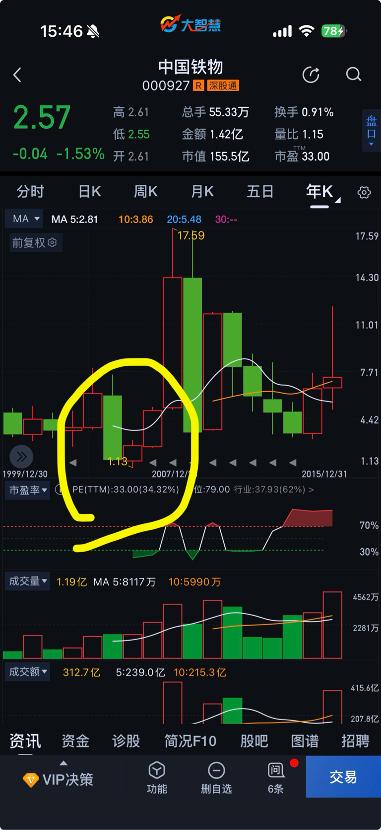 $中国铁物(SZ000927)$ 跌到以前1.1多就麻烦了