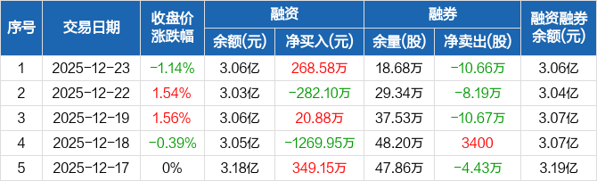 中国铁物:融资净买入268.58万元,融资余额3.06亿元(12-23)