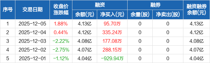 天奇股份:连续4日融资净买入累计896.17万元(12-05)