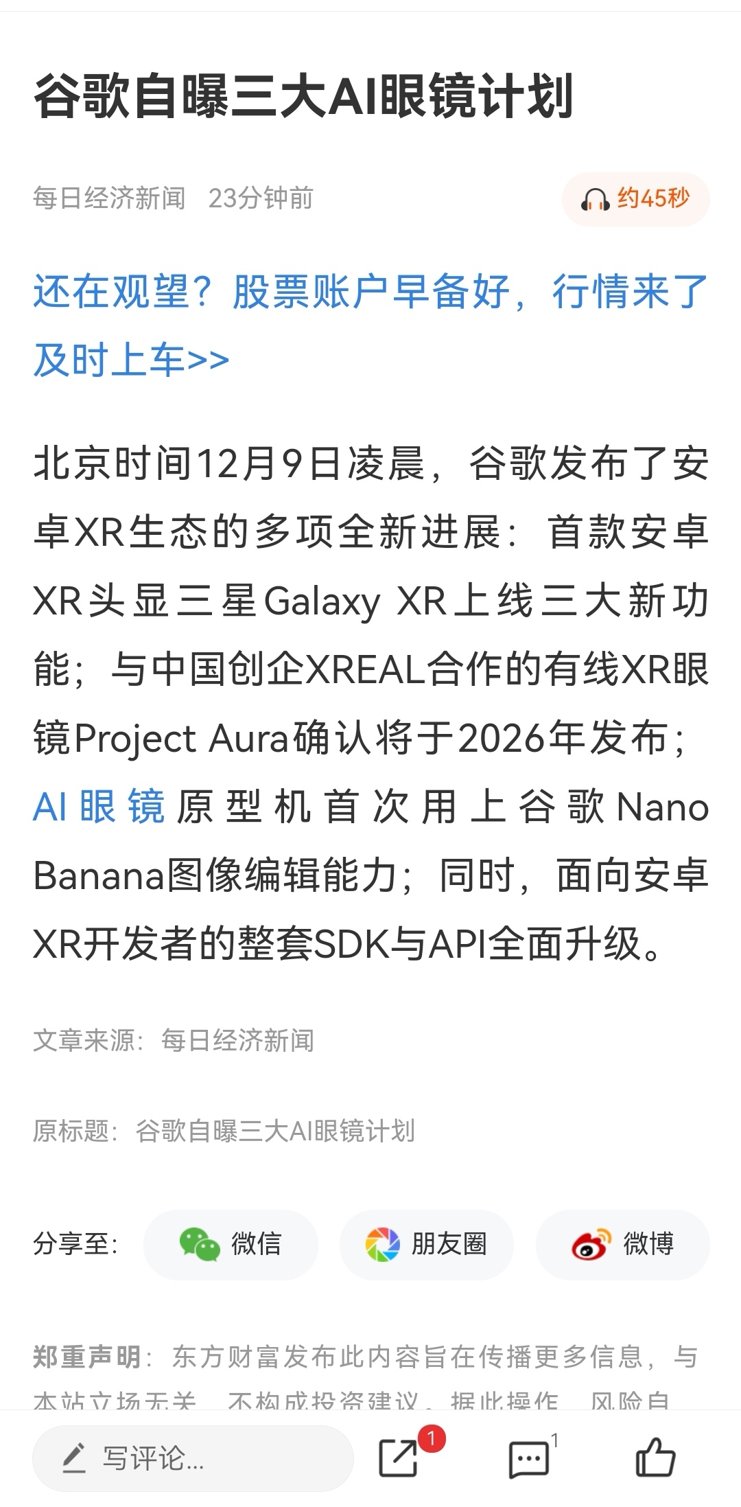 这么多人还在YY啊?谷歌发布AI眼镜,自己的股票昨晚都大跌!而且谷歌是与中国企业