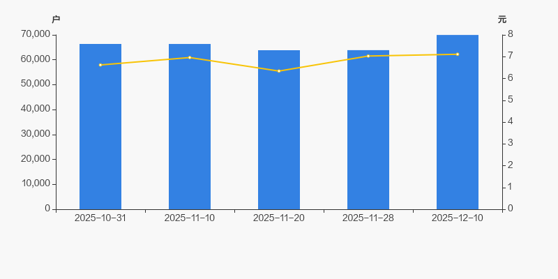 2025年10月31日至今,公司股东户数有所增长,区间涨幅为5.43%。2025年10月31日至2025年12月10日区间股价上涨7.40%。