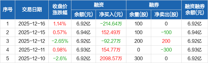 友阿股份:融资净偿还214.64万元,融资余额6.92亿元(12-16)