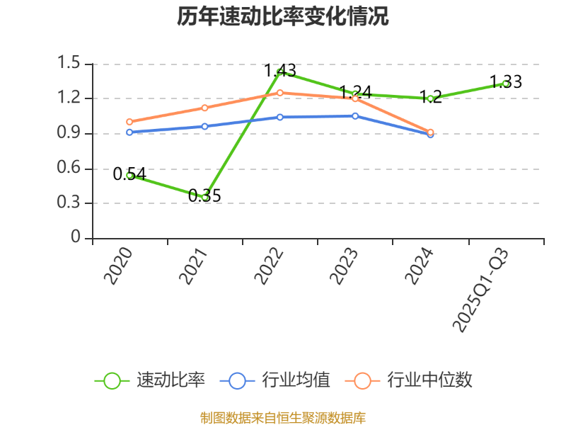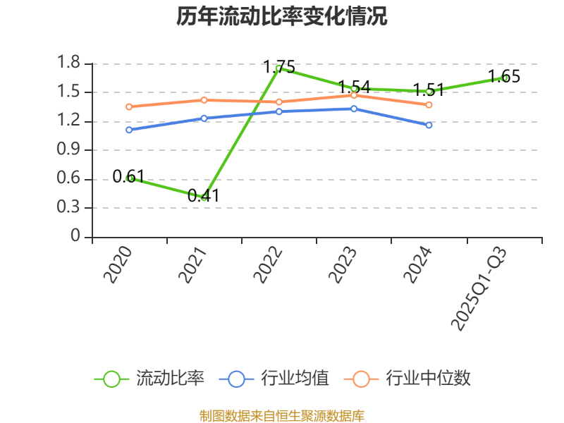 2025年前三季度,公司流动比率为1.65,速动比率为1.33。