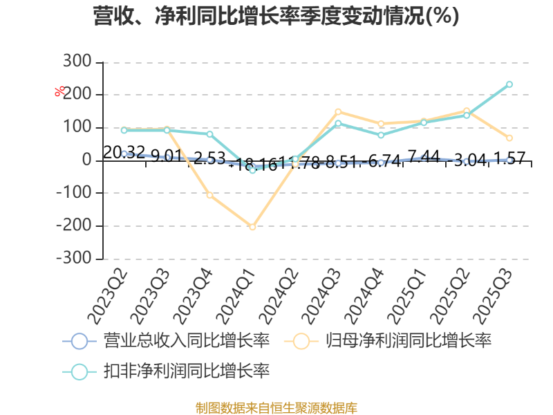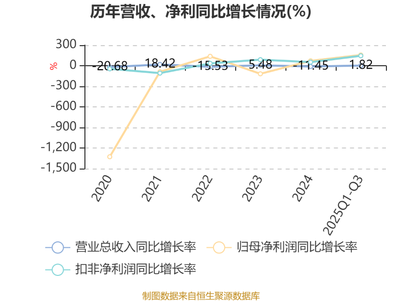 资产重大变化方面,截至2025年三季度末,公司固定资产较上年末减少9.45%,占公司总资产比重下降2.43个百分点;预付款项较上年末增加77.97%,占公司总资产比重上升1.83个百分点;应收款项融资较上年末增加154.55%,占公司总资产比重上升1.82个百分点;货币资金较上年末增加9.1%,占公司总资产比重上升1.44个百分点。