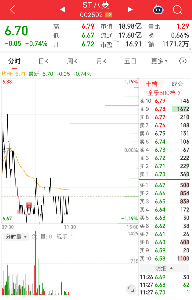 $ST八菱(SZ002592)$ 唱多的大哥们加把劲儿,l让我这个t钩降低一下成本,套仨点啦