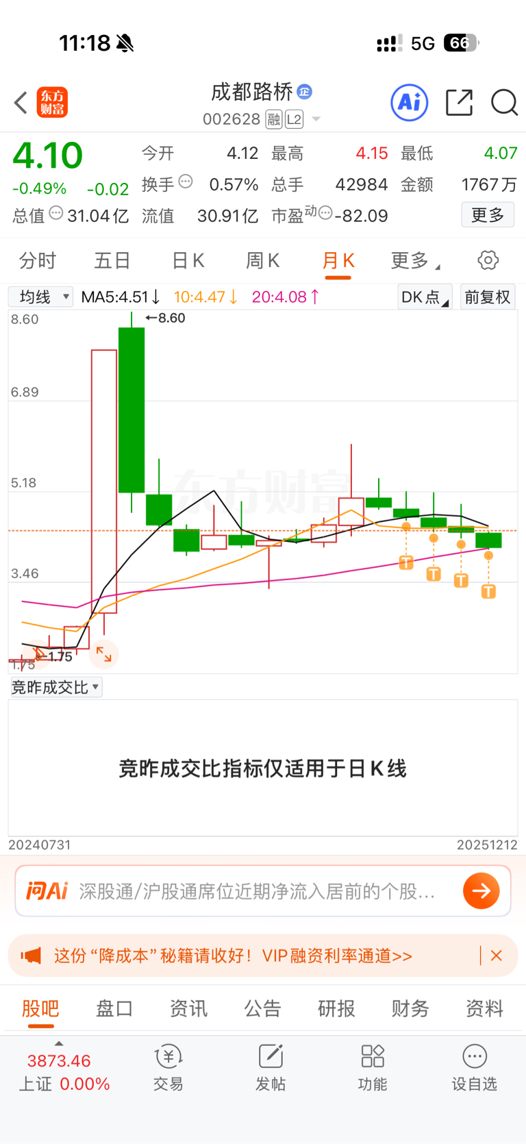 $成都路桥(SZ002628)$ 连续做了四个月,真的不知道如何形容你,希望你好,因为我想解套