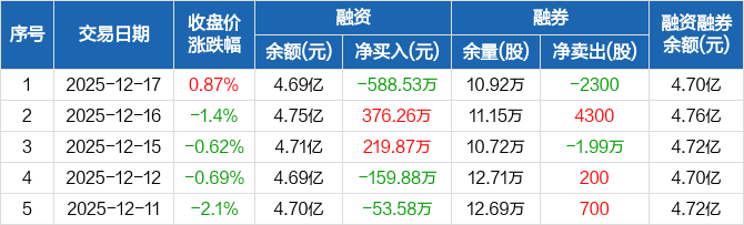 博彦科技:融资净偿还588.53万元,融资余额4.69亿元(12-17)