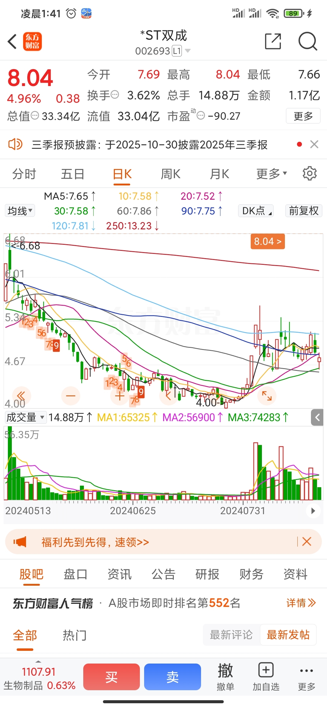 $*ST双成(SZ002693)$ 时间过的真快又异动了