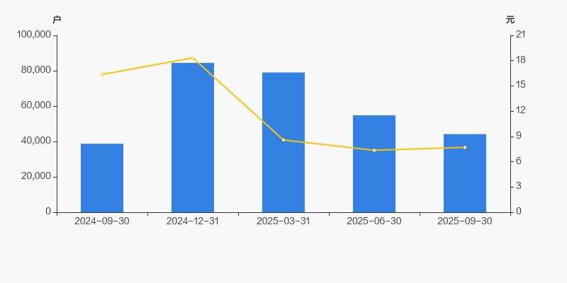 自2024年12月31日以来,公司股东户数连续3期下降,截至目前减幅为47.70%。2024年12月31日至2025年9月30日区间股价下降57.99%。