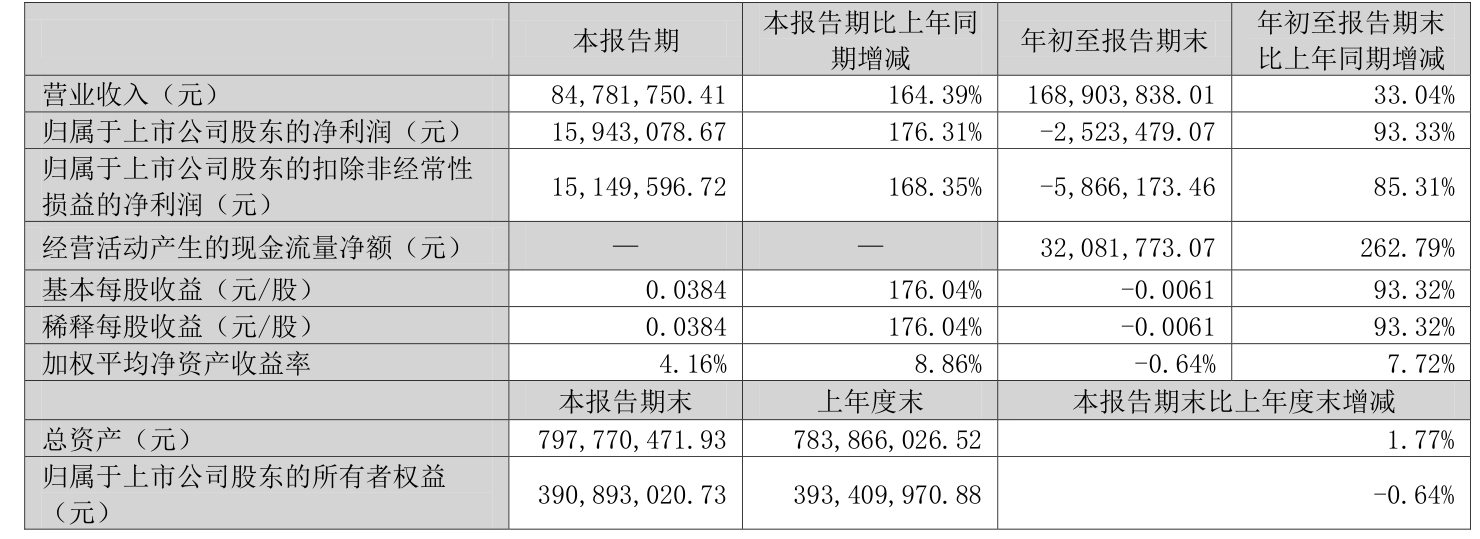 中证智能财讯 *ST双成(002693)10月30日披露2025年第三季度报告。前三季度公司实现营业总收入1.69亿元,同比增长33.04%;归母净利润亏损252.35万元,上年同期亏损3783.77万元;扣非净利润亏损586.62万元,上年同期亏损3992.46万元;经营活动产生的现金流量净额为3208.18万元,上年同期为-1970.72万元;报告期内,*ST双成基本每股收益为-0.0061元,加权平均净资产收益率为-0.64%。