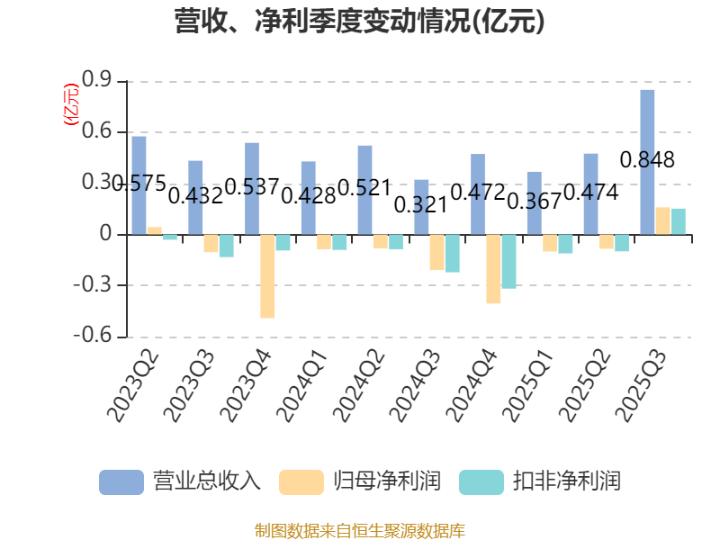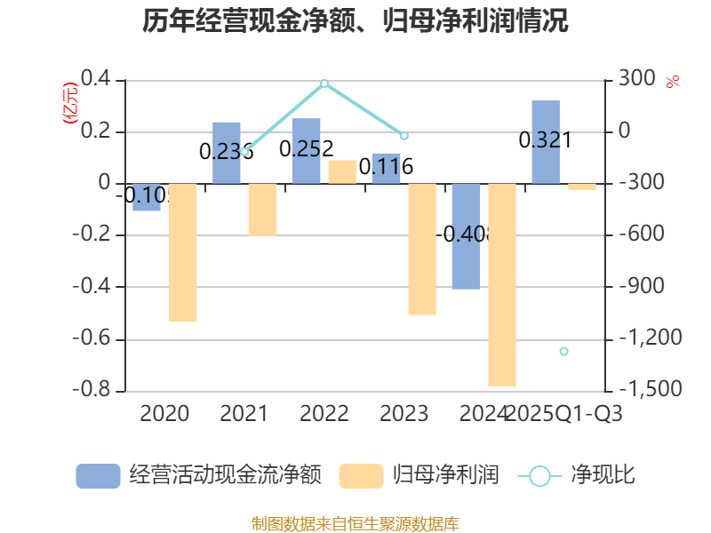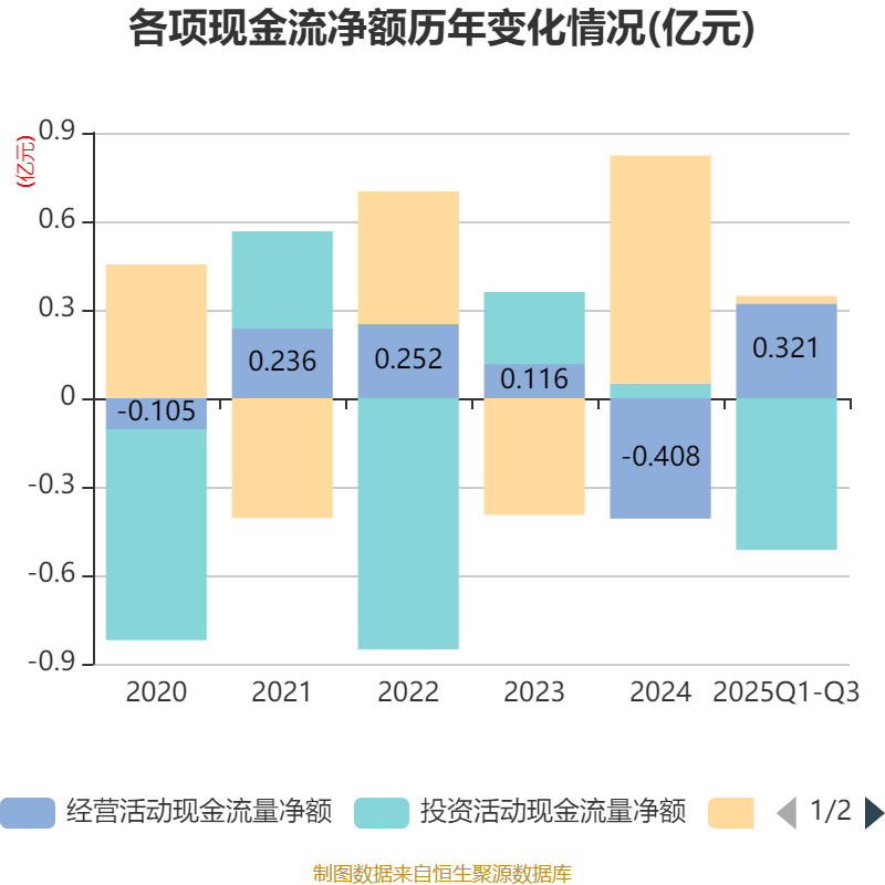 2025年前三季度,公司经营活动现金流净额为3208.18万元,同比增加5178.9万元;筹资活动现金流净额261.47万元,同比减少6670.82万元;投资活动现金流净额-5139万元,上年同期为-1606.16万元。