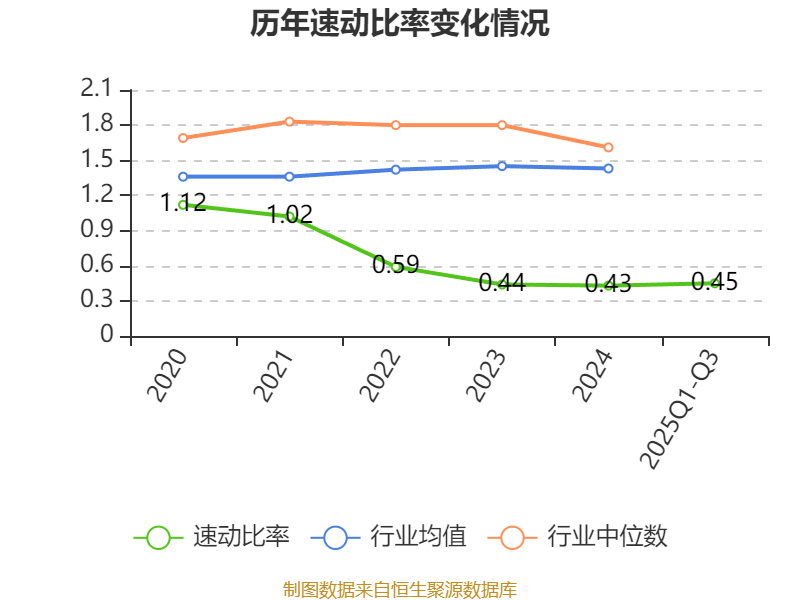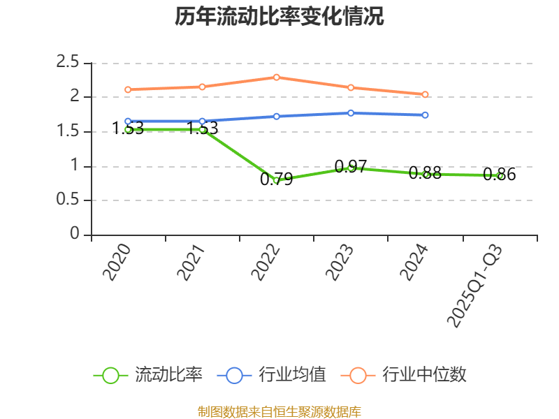 2025年前三季度,公司流动比率为0.86,速动比率为0.45。