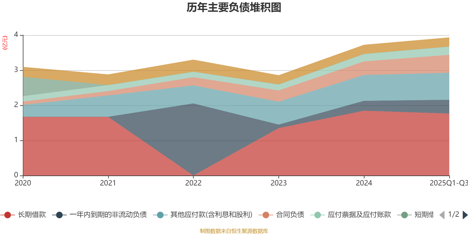 负债重大变化方面,截至2025年三季度末,公司合同负债较上年末增加31.64%,占公司总资产比重上升1.45个百分点;长期借款较上年末减少4.34%,占公司总资产比重下降1.41个百分点;一年内到期的非流动负债较上年末增加38.75%,占公司总资产比重上升1.31个百分点;其他应付款(含利息和股利)较上年末增加4.83%,占公司总资产比重上升0.28个百分点。
