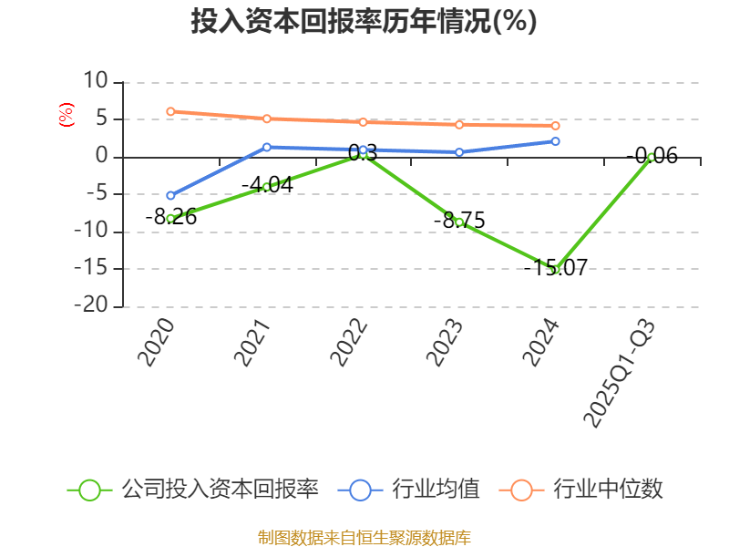 盈利能力方面, 2025年前三季度公司加权平均净资产收益率为-0.64%,同比上升7.72个百分点。公司2025年前三季度投入资本回报率为-0.06%,较上年同期上升6.62个百分点。