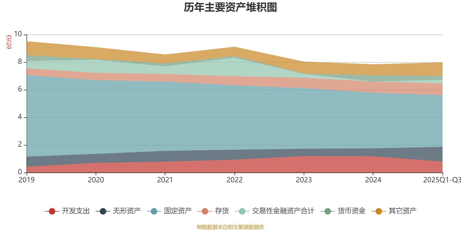 资产重大变化方面,截至2025年三季度末,公司无形资产较上年末增加83.69%,占公司总资产比重上升5.95个百分点;开发支出较上年末减少32.19%,占公司总资产比重下降4.99个百分点;固定资产较上年末减少7.26%,占公司总资产比重下降4.57个百分点;交易性金融资产合计较上年末增加927516.71%,占公司总资产比重上升3.29个百分点。