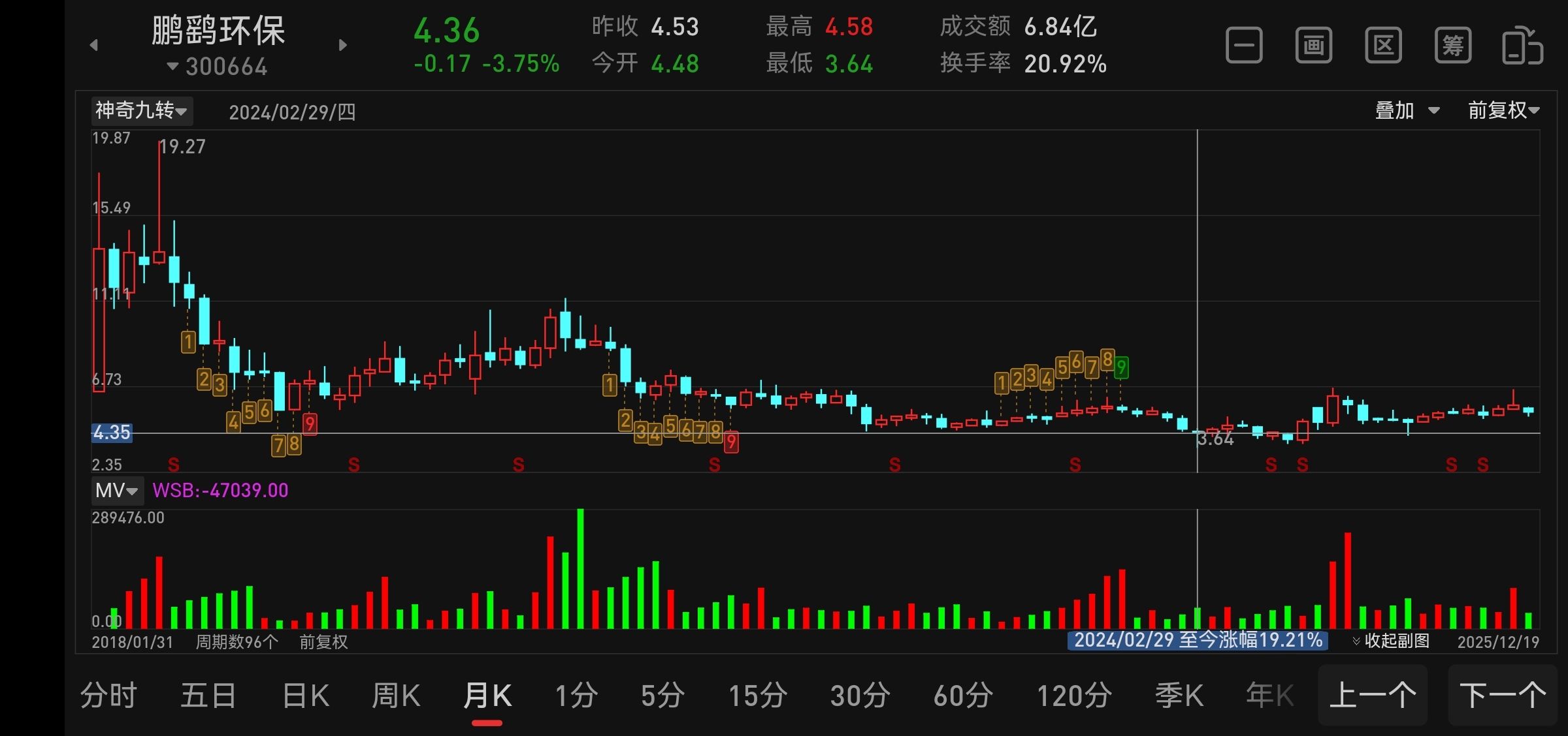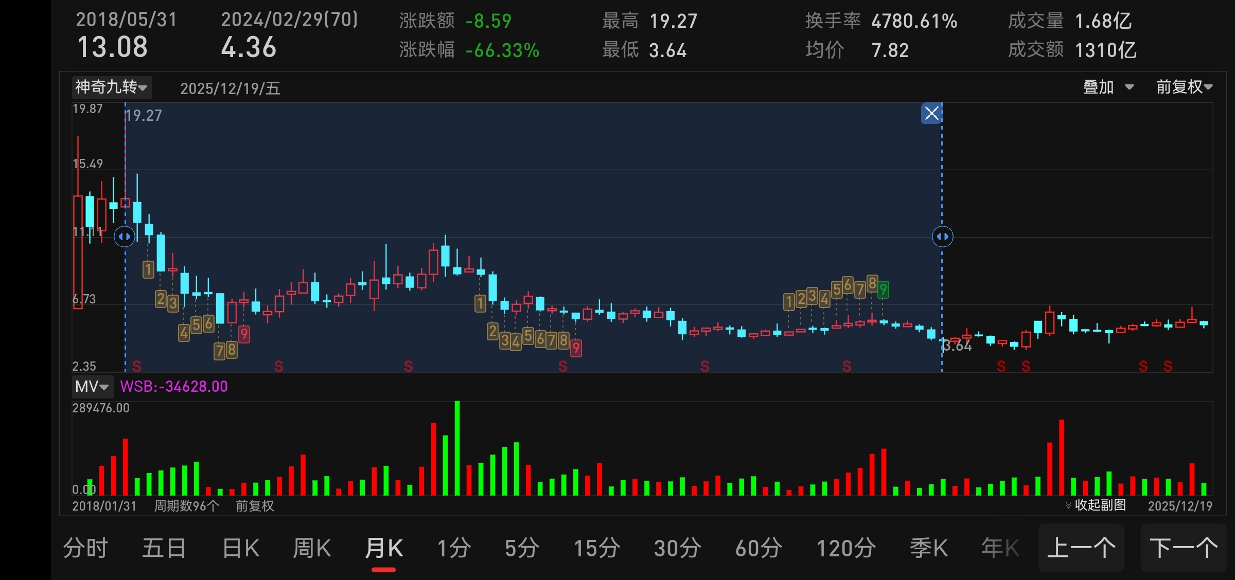 没人看上哈。熊市结束收4.36,攻击K线4.36。