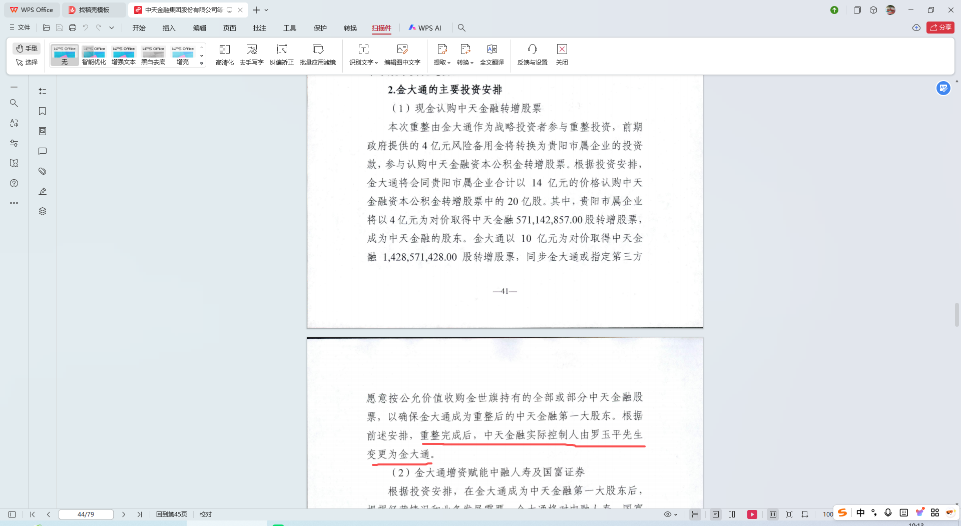 现在能确定的是金大爷支付战投资金为3-3-4,分三笔支付,前面已经支付了2笔了,估计要等地产完全剥离了打最后一笔,跟到进度来的