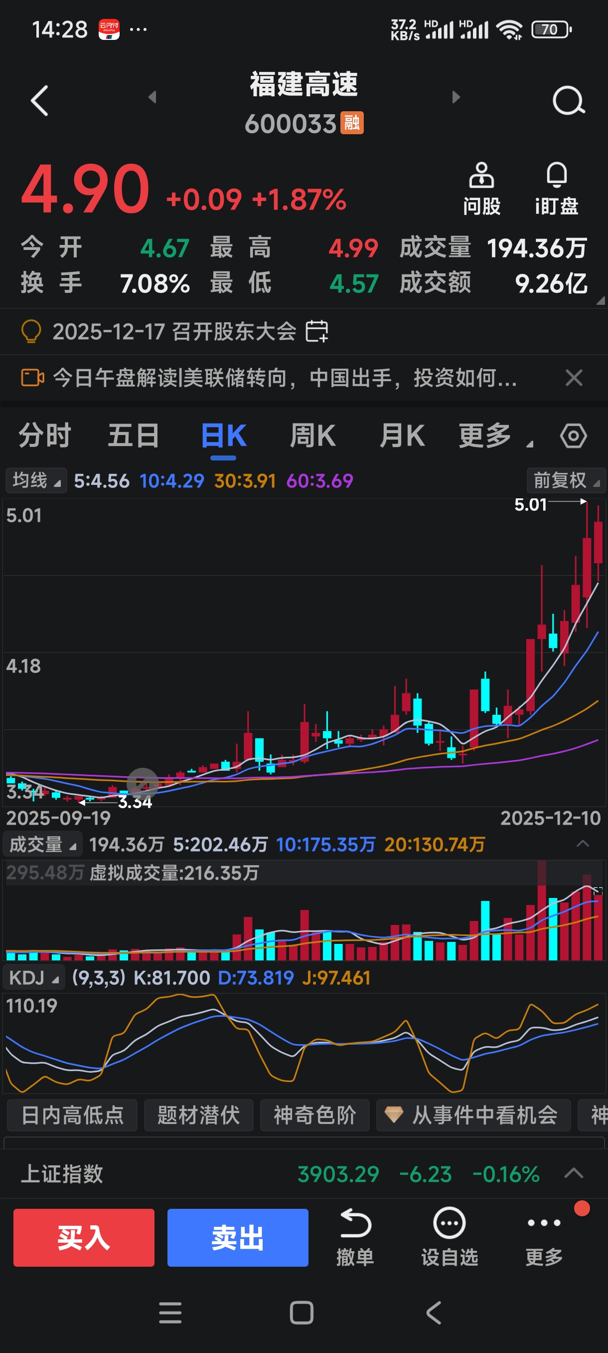 热烈庆祝福建高速股价超越中原高速!