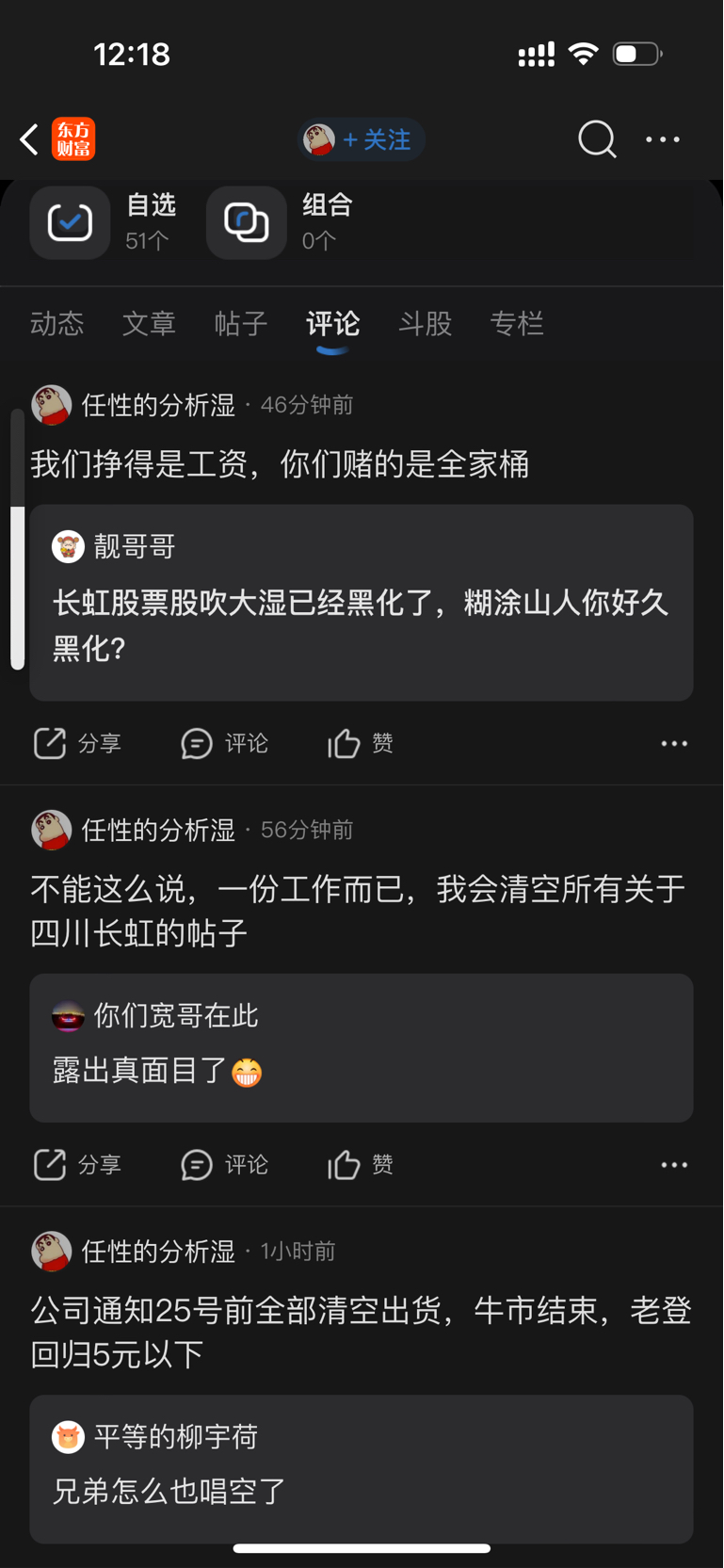 $四川长虹(SH600839)$ 任性分析湿开始清空文章和评论了,搞得我内心空落落的,以后长虹股吧又少了个跳梁小丑