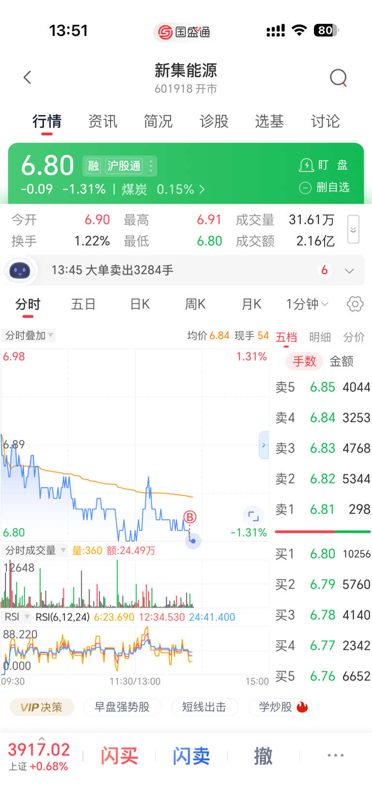 $新集能源(SH601918)$ 6.8 打个底仓,涨了就卖,跌了再买