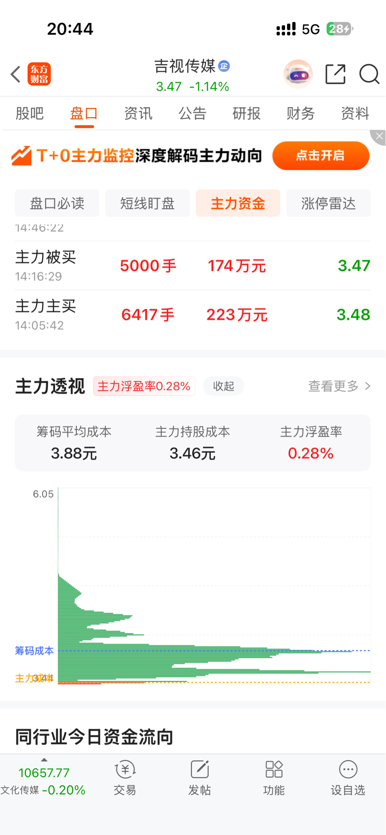 $吉视传媒(SH601929)$ 已经到主力成本线了