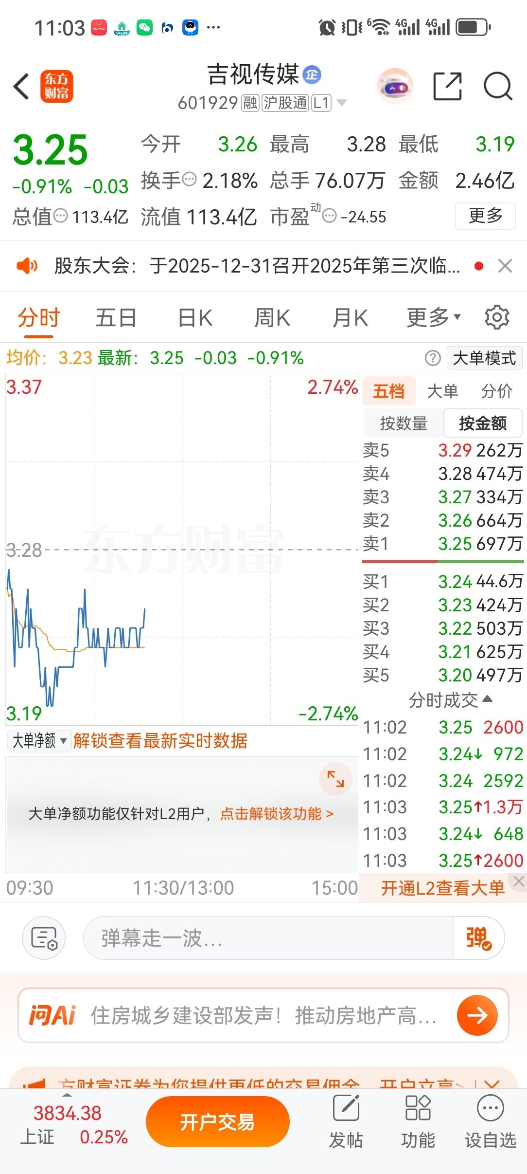 $吉视传媒(SH601929)$ 记录一下今天苦逼日子。