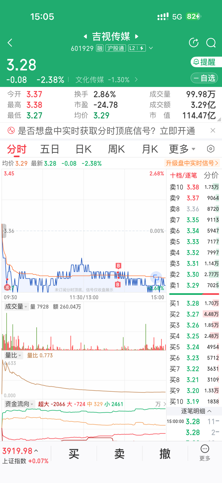 $吉视传媒(SH601929)$ 今天买进,明天必须吃肉,