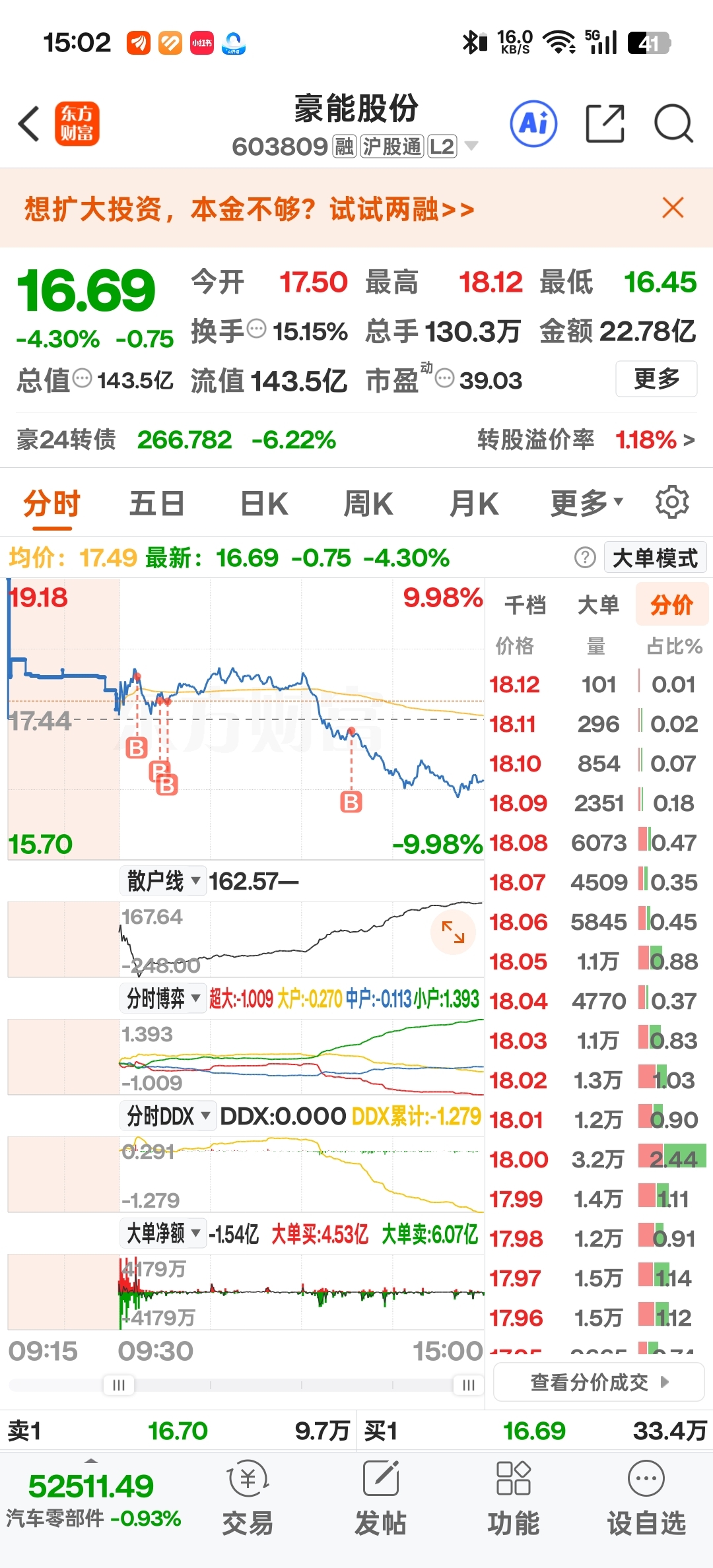 $豪能股份(SH603809)$ 真给面子,再跌5个点就加仓