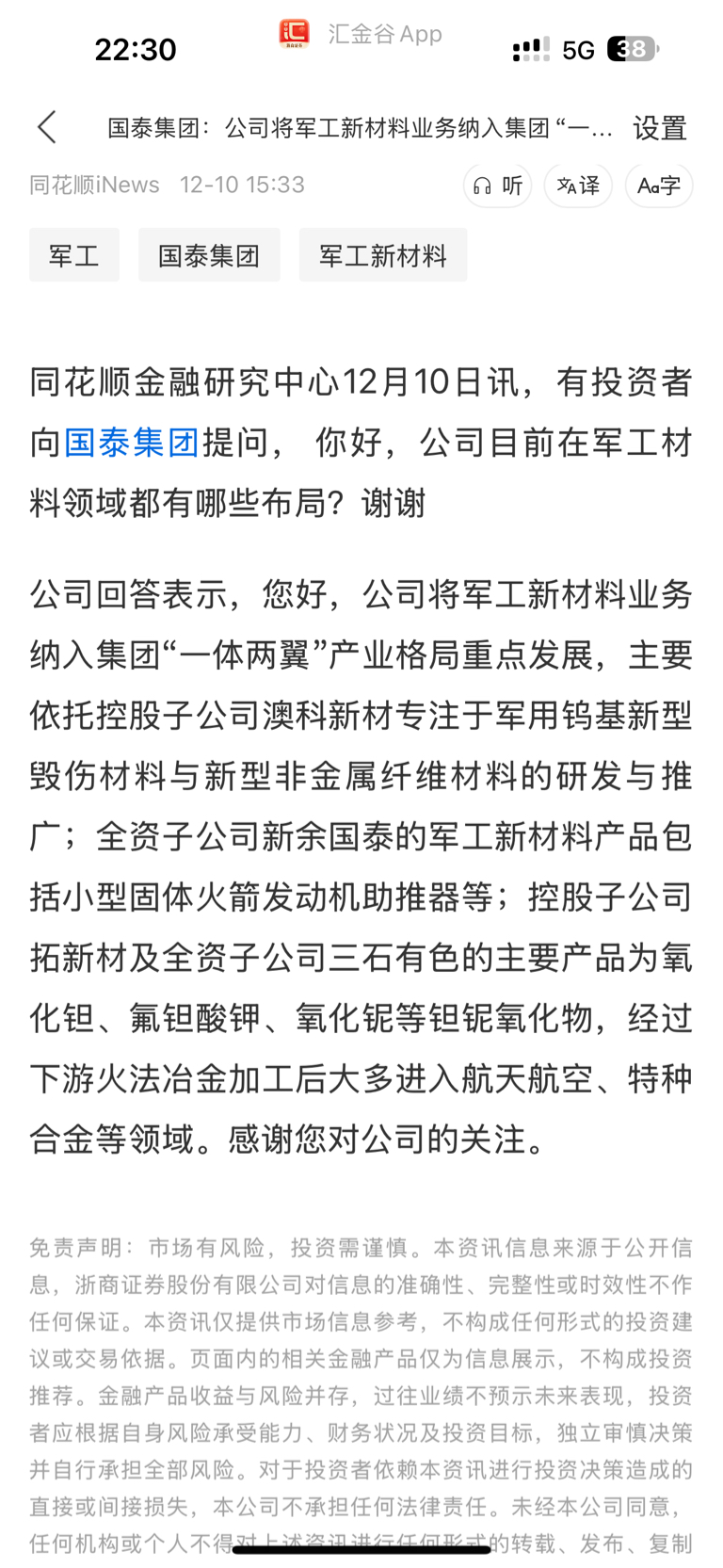 我想知道国泰你能不能行,人家都自己说了生产的东西进入航天航空领域