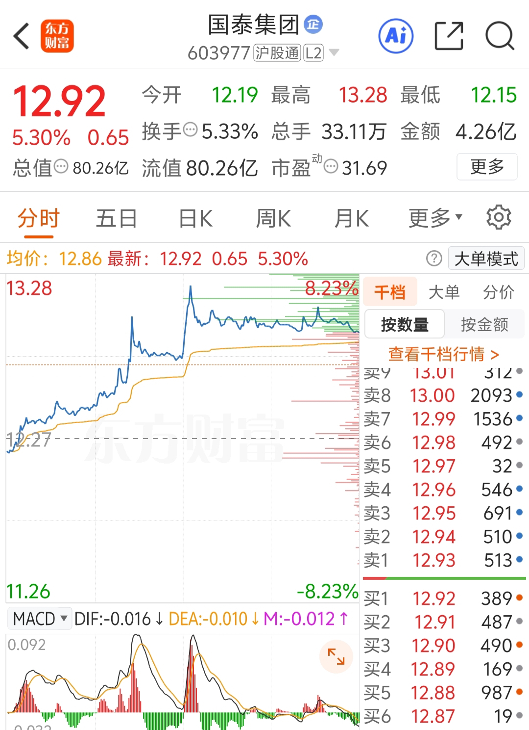 主力净流入0.45亿时,股价12.8;现在净流入1.02亿,股价12.92。