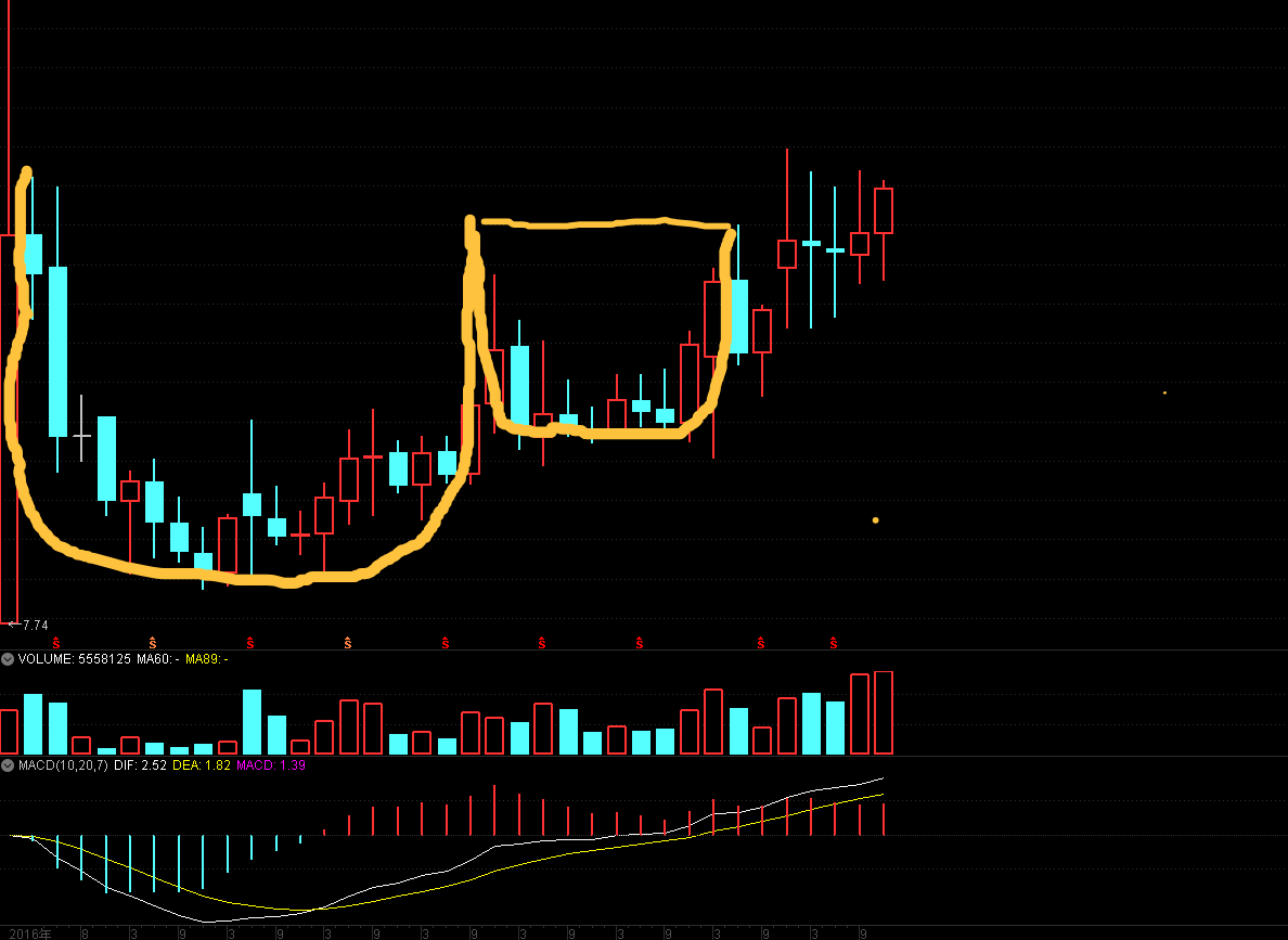 分享:威廉、欧奈尔,杯柄形态,基本面和技术面共振的情况下,容易引发股价大幅上升。