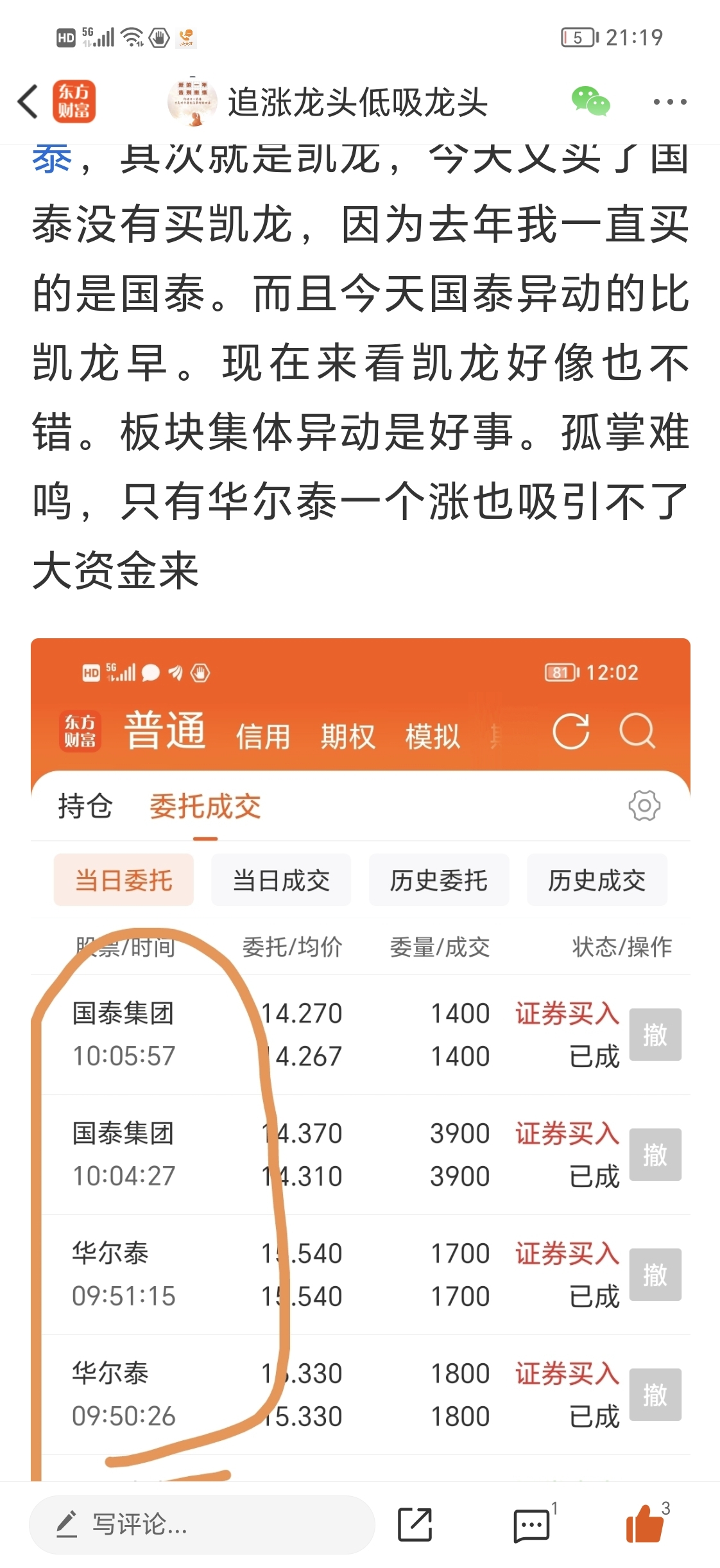 这几年每年都买国泰,去年也重仓了,就今年没买,他开始连板了,这是我去年的交易单。