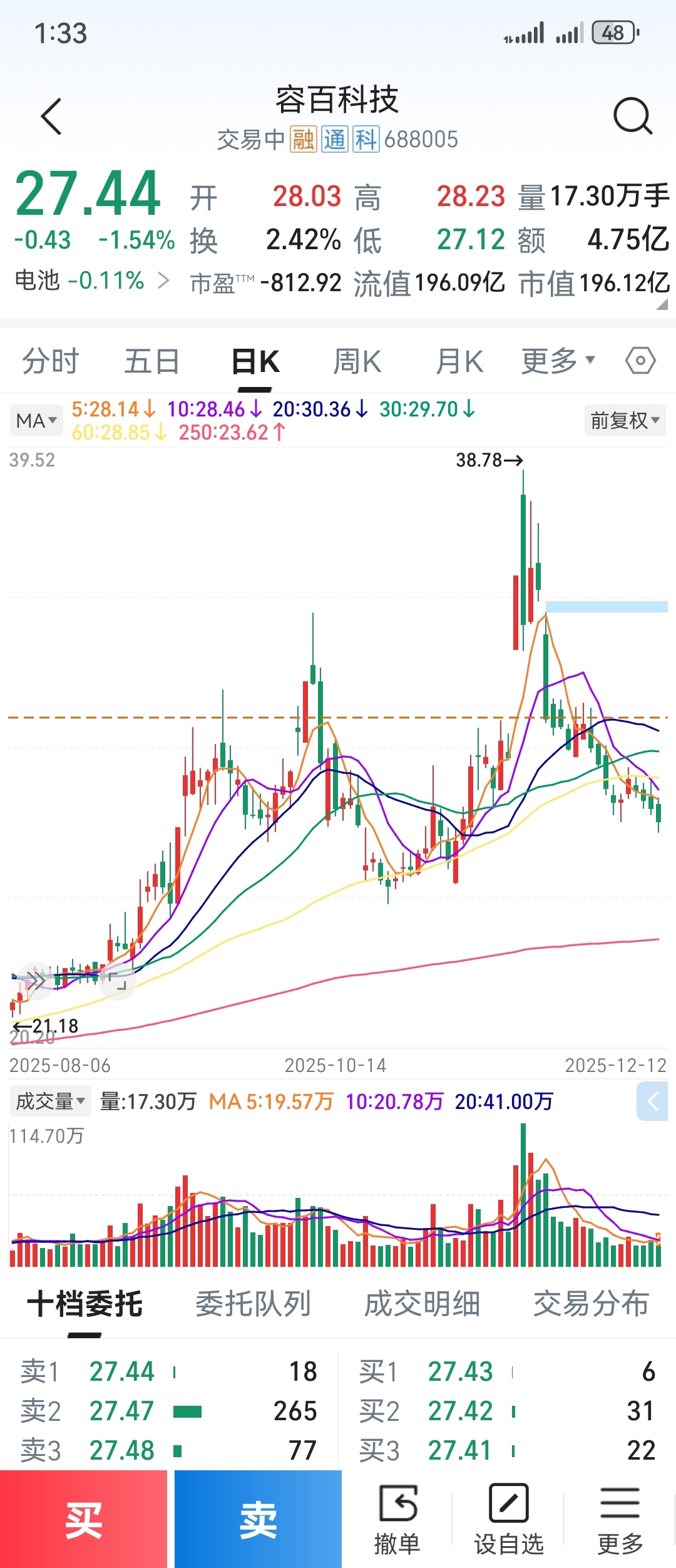 $容百科技(SH688005)$ 买了以后天天跌,真没法儿啊