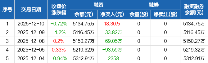 中科微至:融资净买入18.3万元,融资余额5134.75万元(12-10)