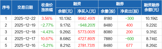 源杰科技:融资净买入9682.49万元,融资余额10.13亿元(12-22)