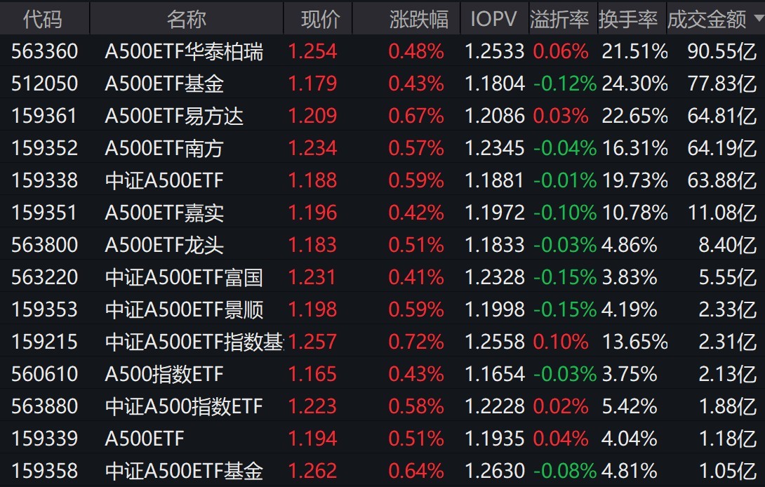 市场早盘震荡拉升,中证A500指数上涨0.54%,4只中证A500相关ETF成交额超64亿元