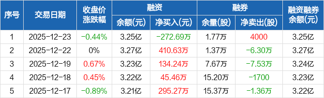 金隅冀东:融资净偿还272.69万元,融资余额3.25亿元(12-23)