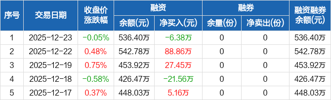 标普500ETF:融资净偿还6.38万元,融资余额536.4万元(12-23)