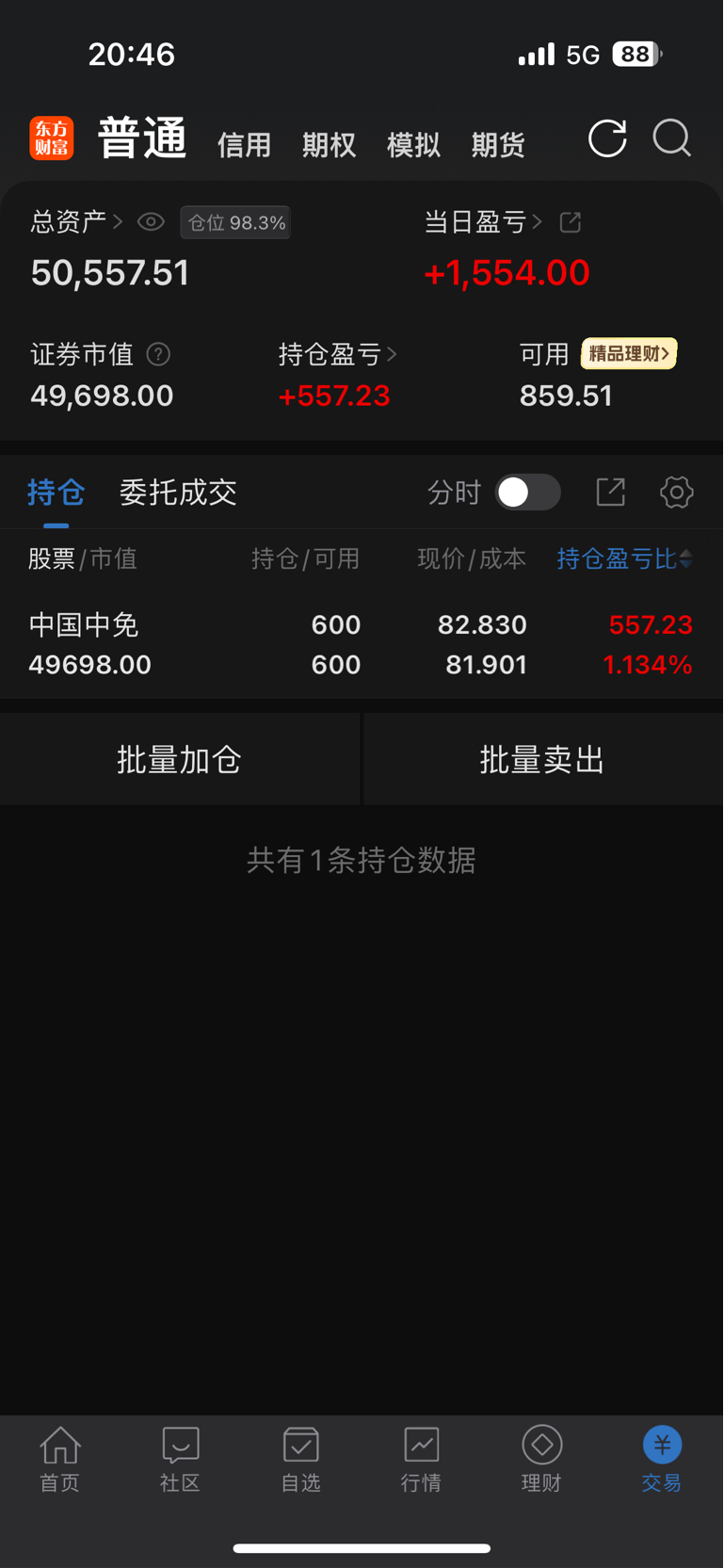 #炒股日记# 全仓持有中国中免,今日盈亏+1554。明天继续加油