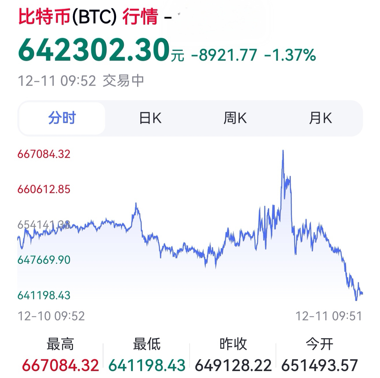 在今天上午9点多的时候,目前观察比特币是大跌-1.37%