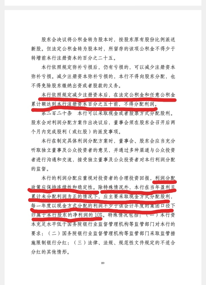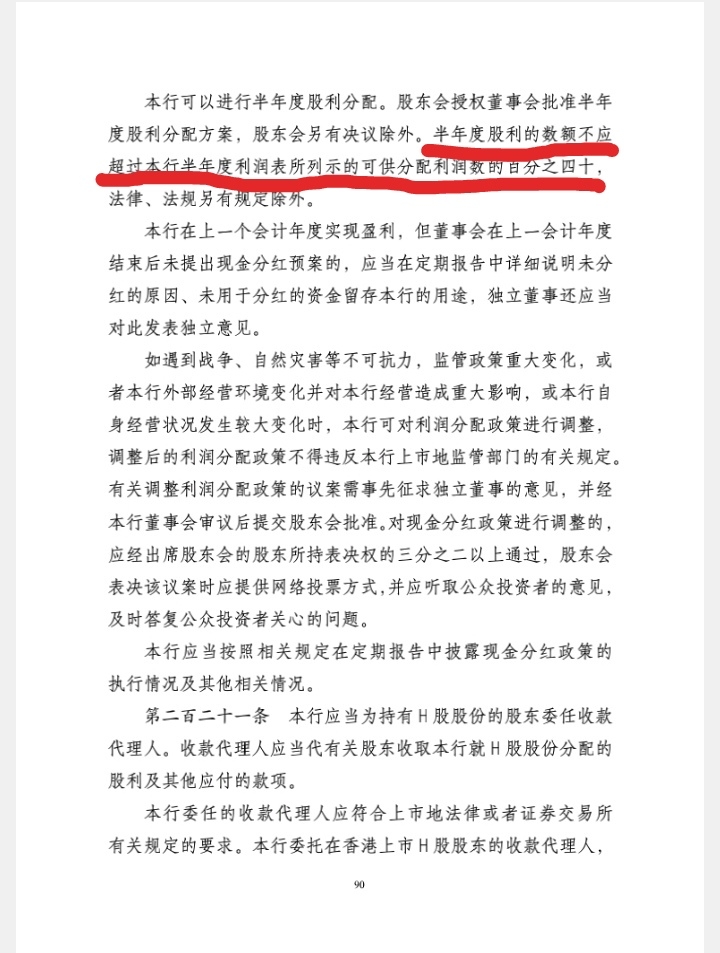 看新版准备通过的《交通银行股份有限公司章程》,第220条规定,最高利润分配比例提