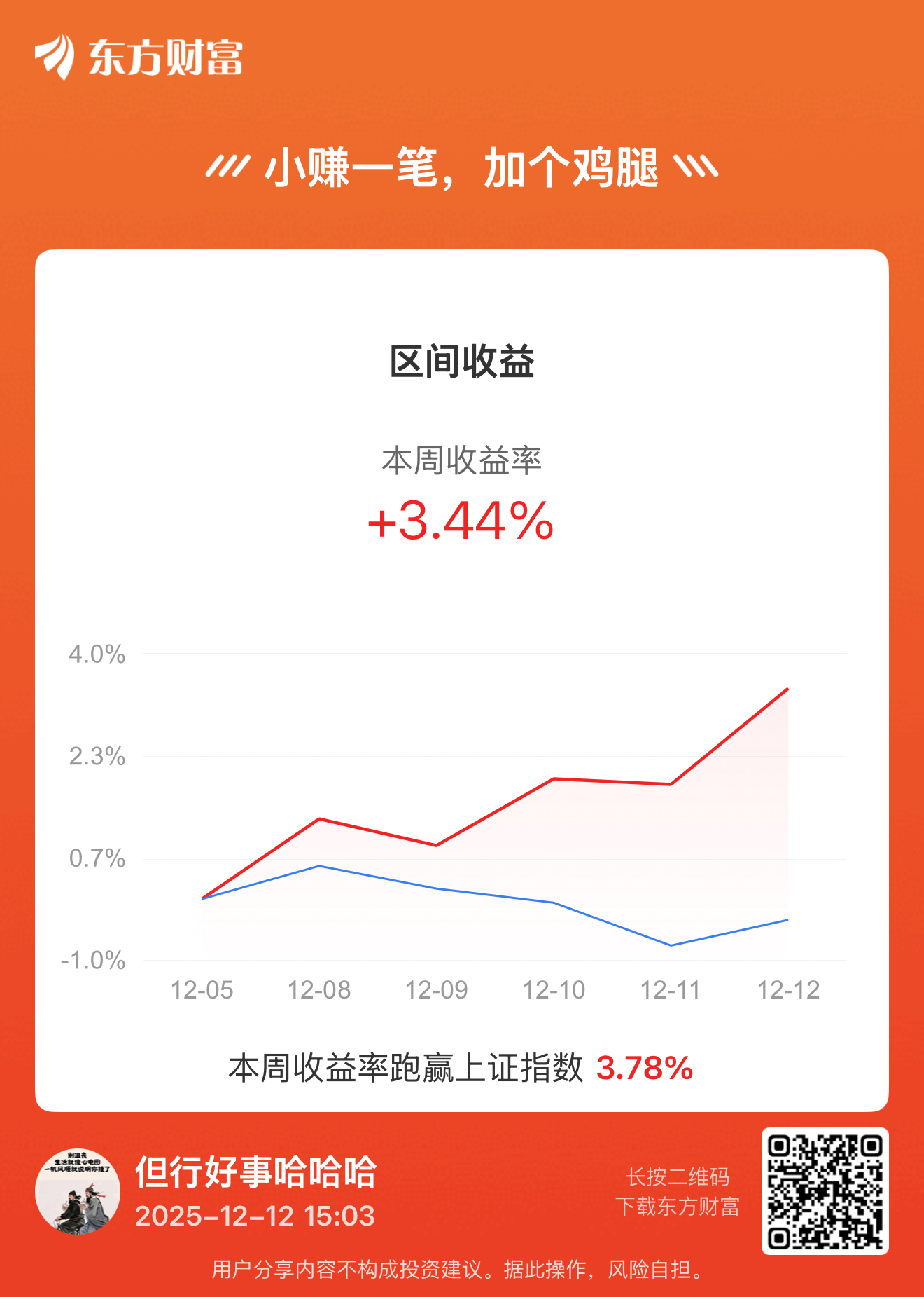 本周一直满仓躺着。略微跑盈大盘。下周继续躺赢!哈哈哈哈哈