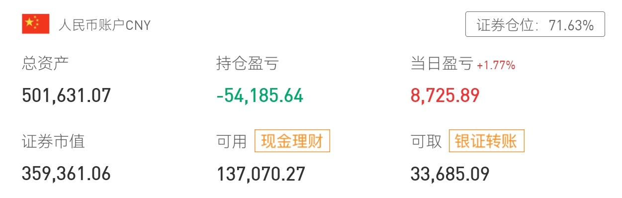 持仓稳健收益飘红,现金理财灵活备取,资产配置游刃有余。