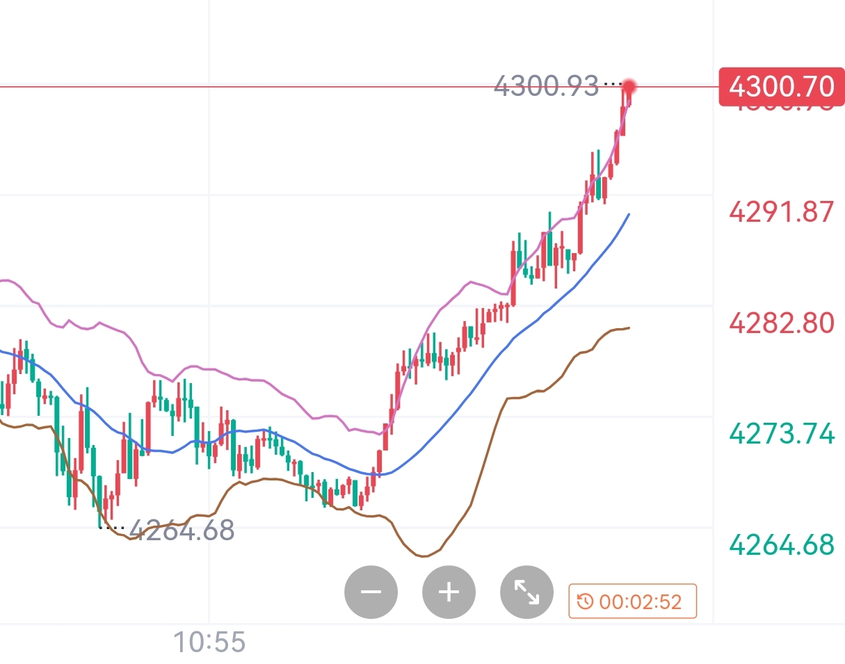 黄金今日一直在看哆做哆,目前已经突破4300,目标4320依旧不变,等待晚间美磐