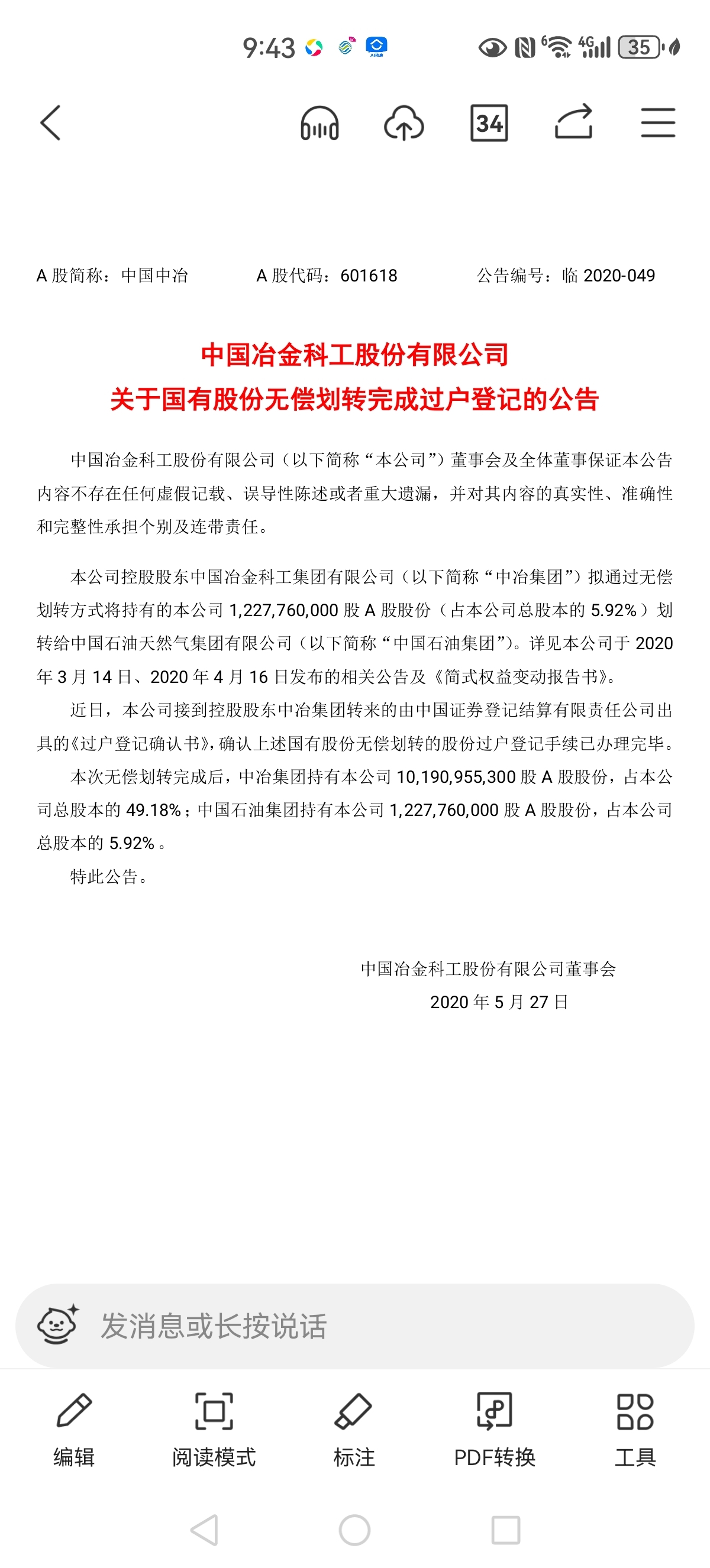 控股”)签署了《股权转让协议》(简称“第一笔股权转让协议”),公司拟将所持有的中冶置业集团有限公司(简称“中冶置业”)100%的股权及公
