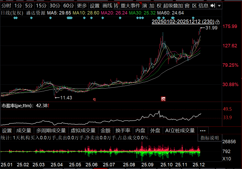 若公司规划中的金、铜、钼项目在未来几年内顺利落地投产,依据现有价格进行较保守的测算,其总年化利润预期将升至25亿元以上,是2024年3.9亿元归母净利润的六倍以上。公司股价虽已从去年9月低点的10元附近反弹了三倍以上至31元,但相较于上述远期盈利预期,仍具备价值提升潜力。