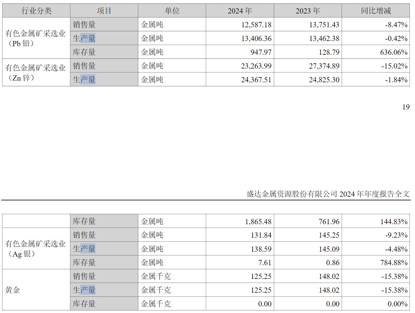 图片说明:盛达资源各金属产品的产销与库存,数据来源于公告