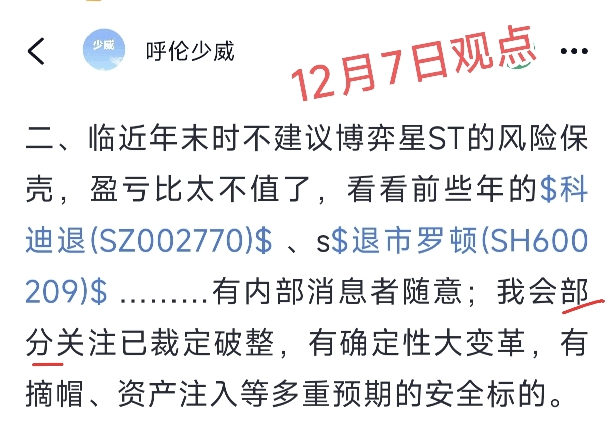 7. 重申年末投资策略:规避保壳类风险标的,部分仓位关注中长期大预期的潜力标的,耐心等待26年的淮海战役。