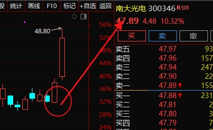 锐捷落袋已止盈,南光接力势将成。周五突破锋芒露,强势前排立阵营。日内冲高十二点,